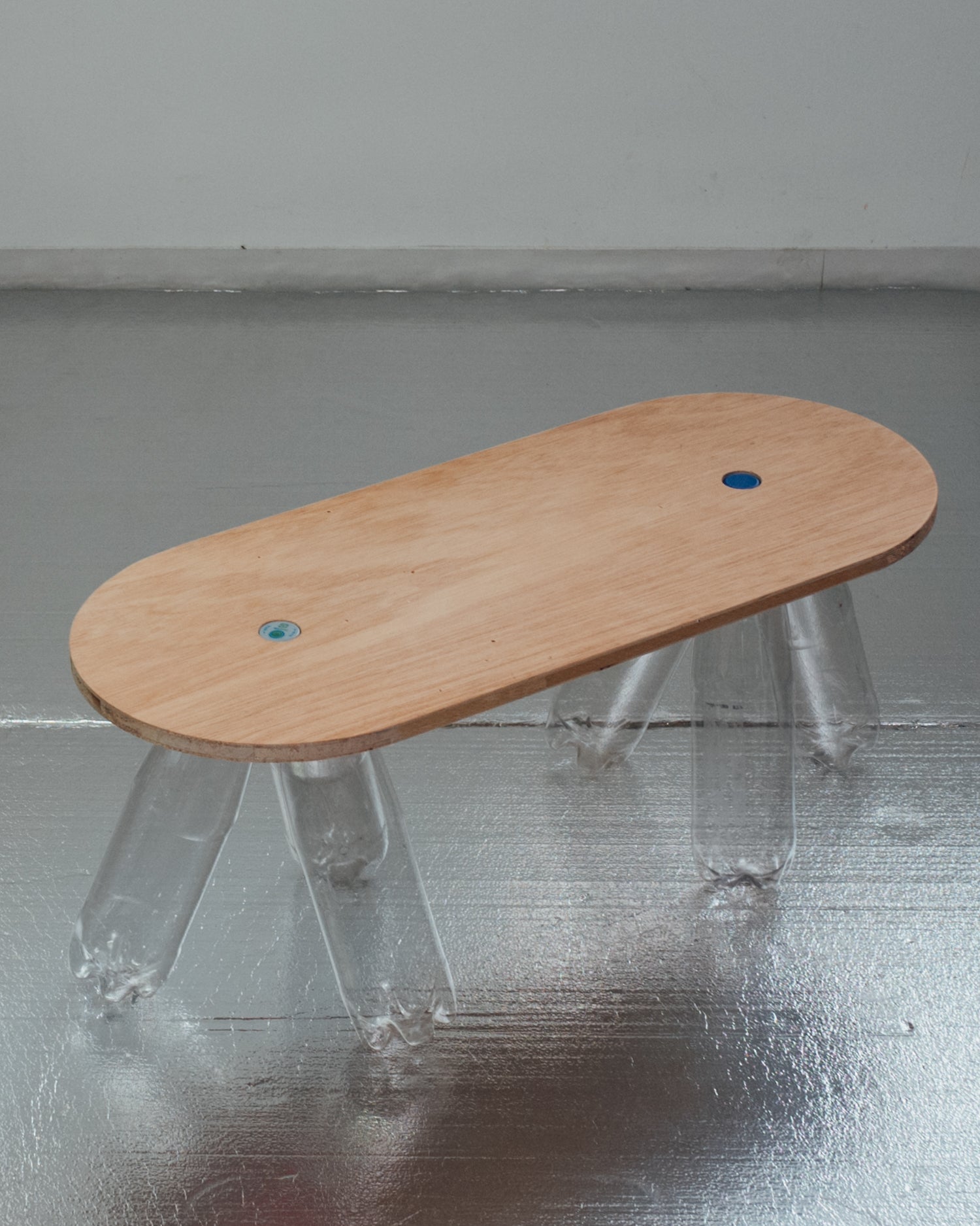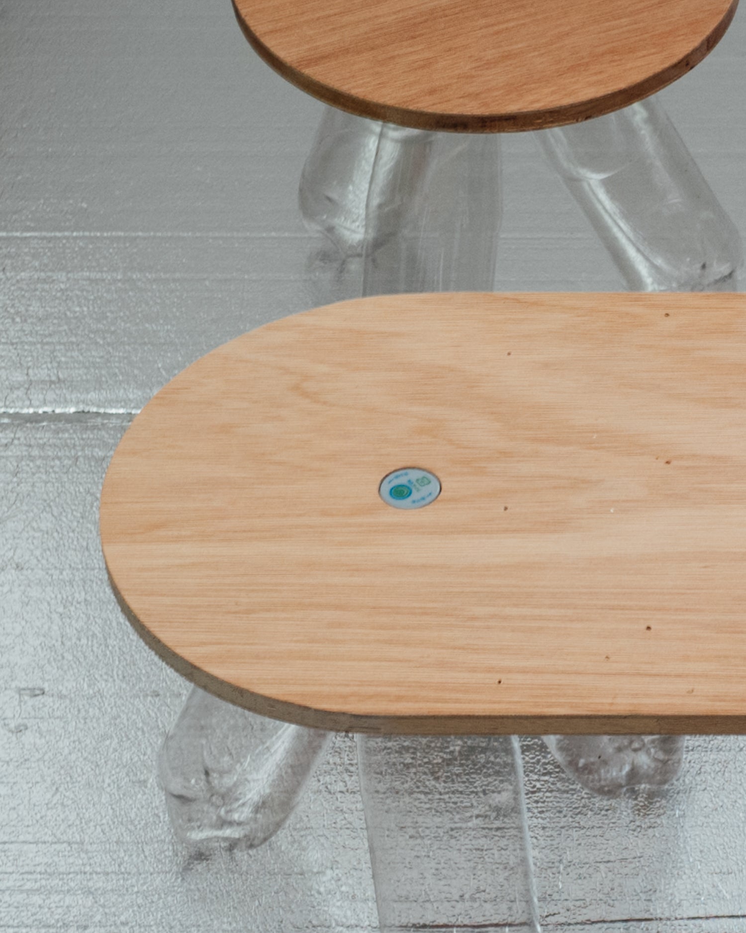 Tabottle2 is an innovative item that transforms your plastic bottle into a table. Simply screw the neck of the bottle into the component and attach it to the table base to use it as a low table. The improved design now features a cap embedded in the tabletop, allowing the top and base to be screwed together using the cap.
